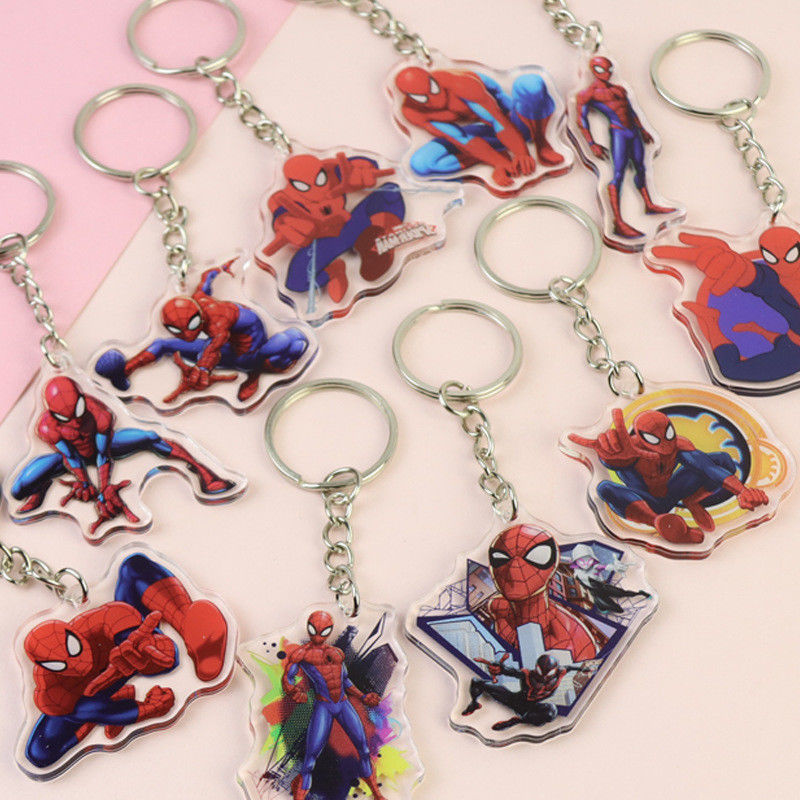Casa > produtos > keychains acrílicos feitos sob encomenda > Chaves de chave acrílicas transparentes personalizadas Cartoon Spider-Man Impresso com anel de metal